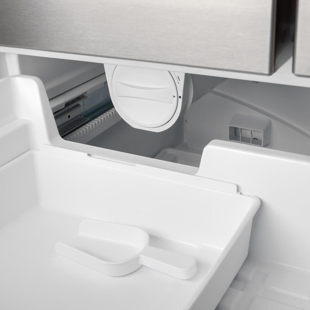В морозильной камере объемом 187 литров также используется система размораживания Total No Frost. Функция "Суперзаморозка" позволяет быстро и эффективно замораживать до 15 кг продуктов в сутки. Льдогенератор автоматически производит кубики льда.