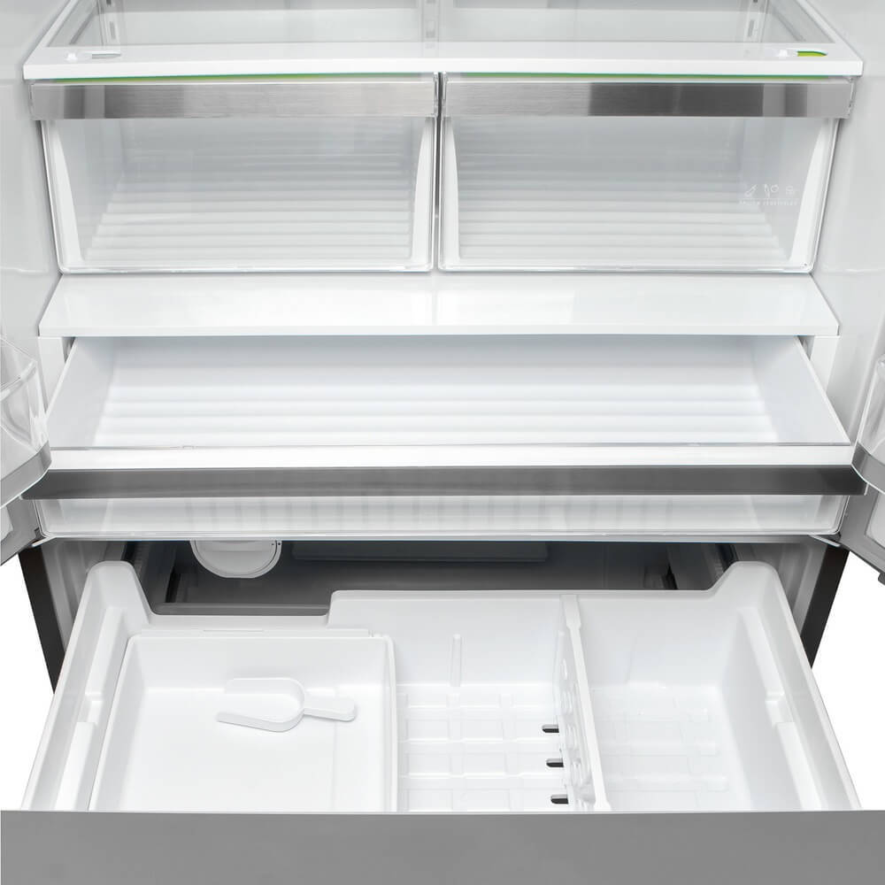 В холодильной камере 449 л предусмотрена зона свежести для хранения любых продуктов, от гастроёмкостей до деликатесов, которая позволяет сохранять продукты свежими дольше, а также два контейнера для овощей и фруктов с регулировкой влажности. Интенсивное охлаждение Super Cool позволяет быстро охладить напитки и закуски.