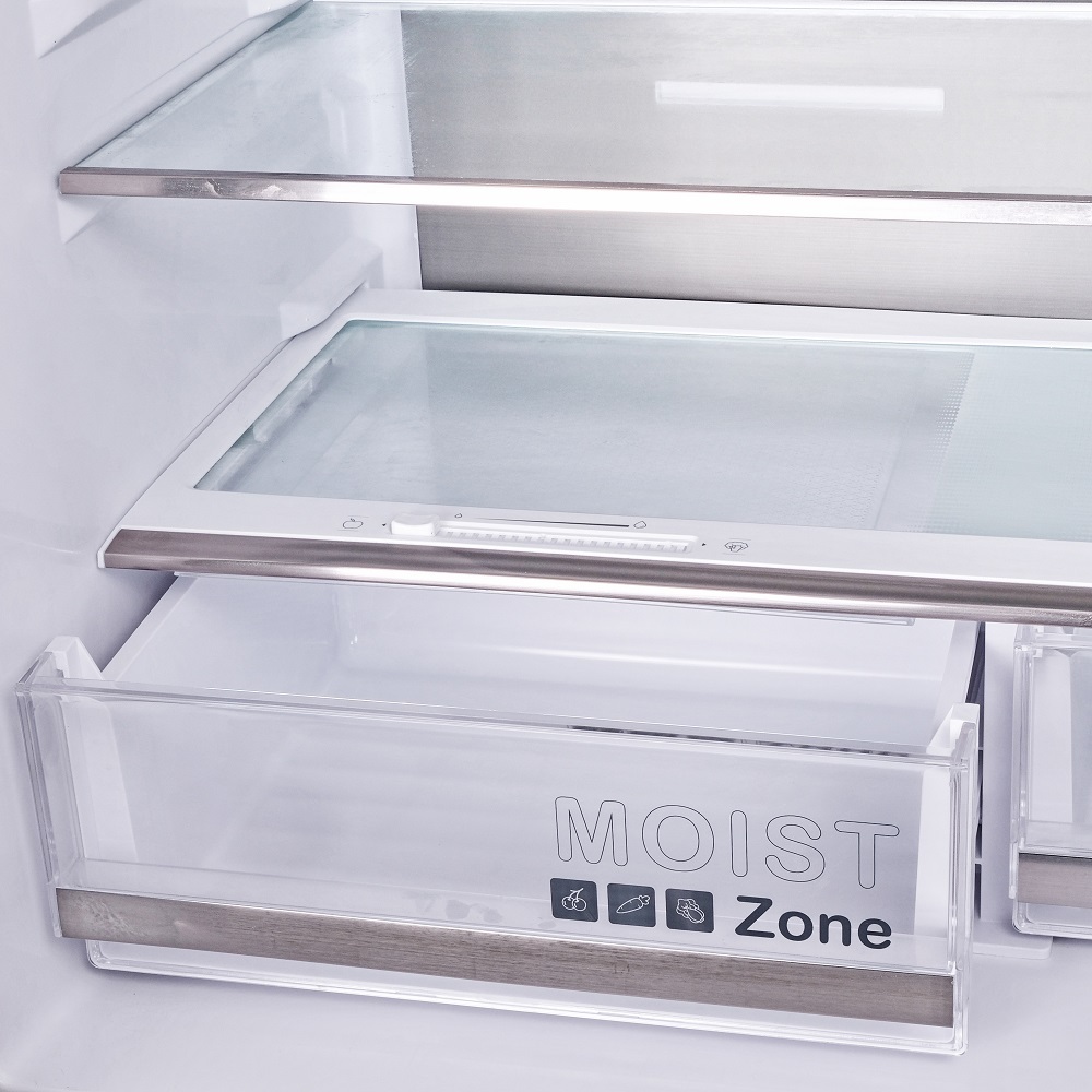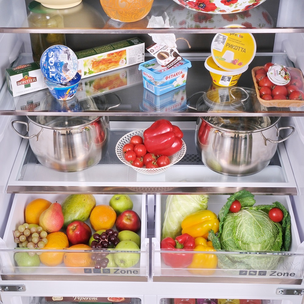 Холодильная камера оснащена системой интенсивного охлаждения Super Cool, позволяет быстро охладить продукты, а зона свежести обеспечивает оптимальные условия для хранения овощей и фруктов.