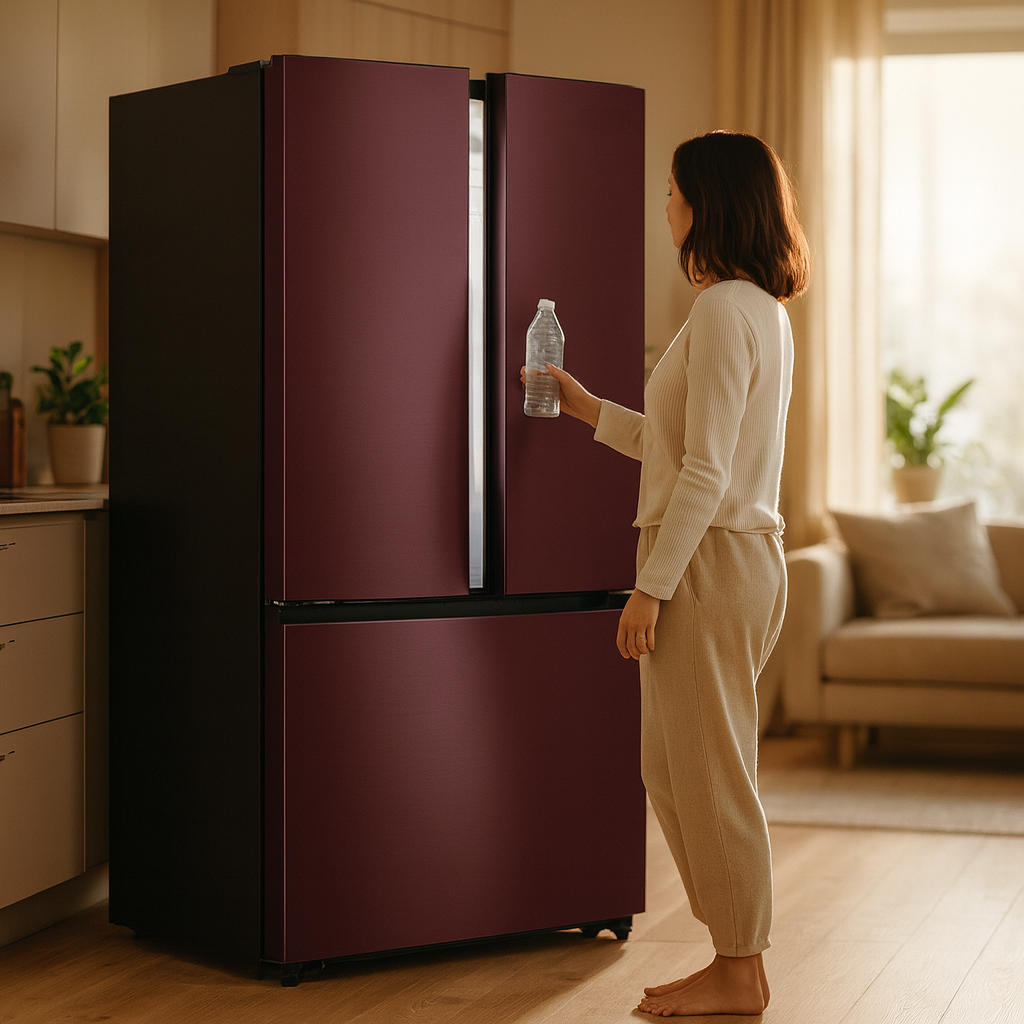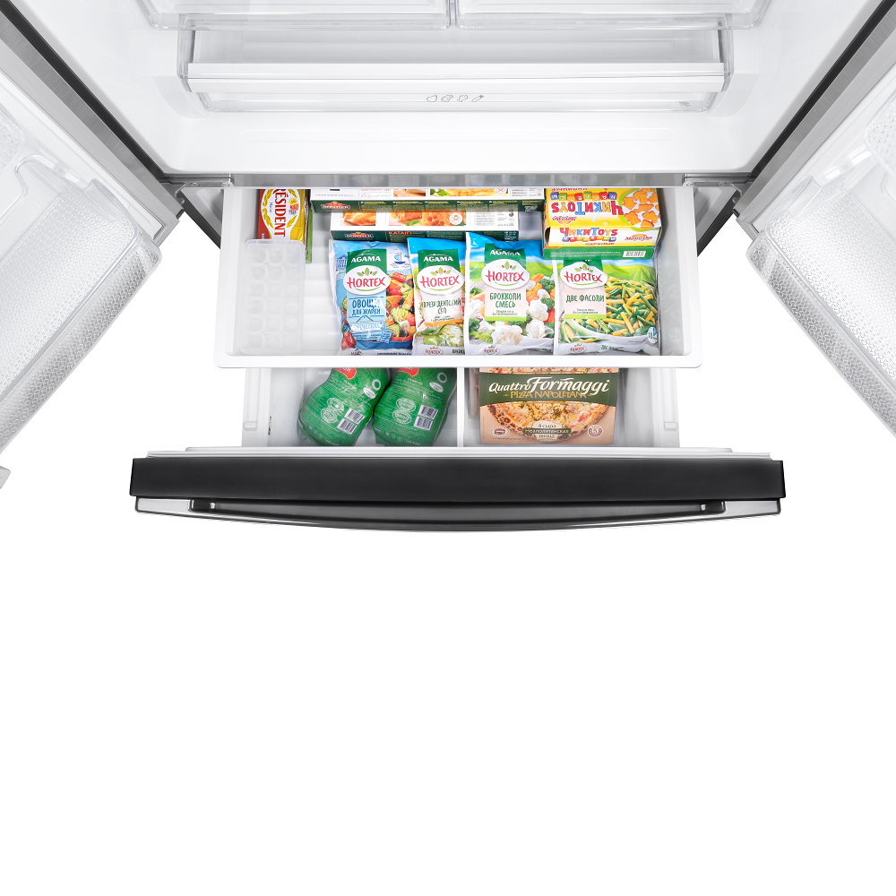 это отдельностоящая трехдверная модель с общим объемом 600 литров. Управление осуществляется с помощью сенсорного Smart Touch дисплея, что делает использование холодильника максимально удобным и простым.