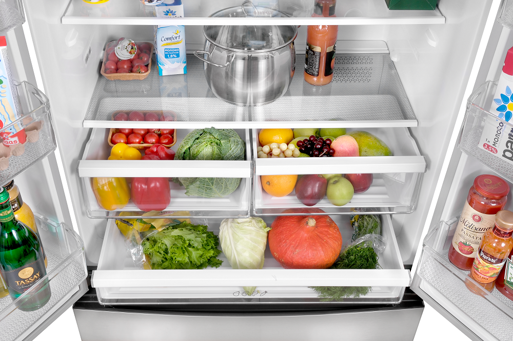 Особенностью данной модели является наличие Total No Frost охлаждения в холодильной камере обеспечивает быстрое и равномерное охлаждение продуктов. Динамическое охлаждение позволяет поддерживать оптимальную температуру в холодильной камере, а интенсивное охлаждение Super Cool позволяет быстро охладить напитки и закуски. В холодильнике также предусмотрена зона свежести, которая позволяет сохранять продукты свежими дольше. В комплекте идут два контейнера для овощей и три стеклянные полки SpillSafe.